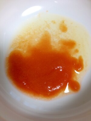離乳食初期6日目 カゴメのトマトペーストを水で薄めて加熱し 離乳食にしました 知育プット